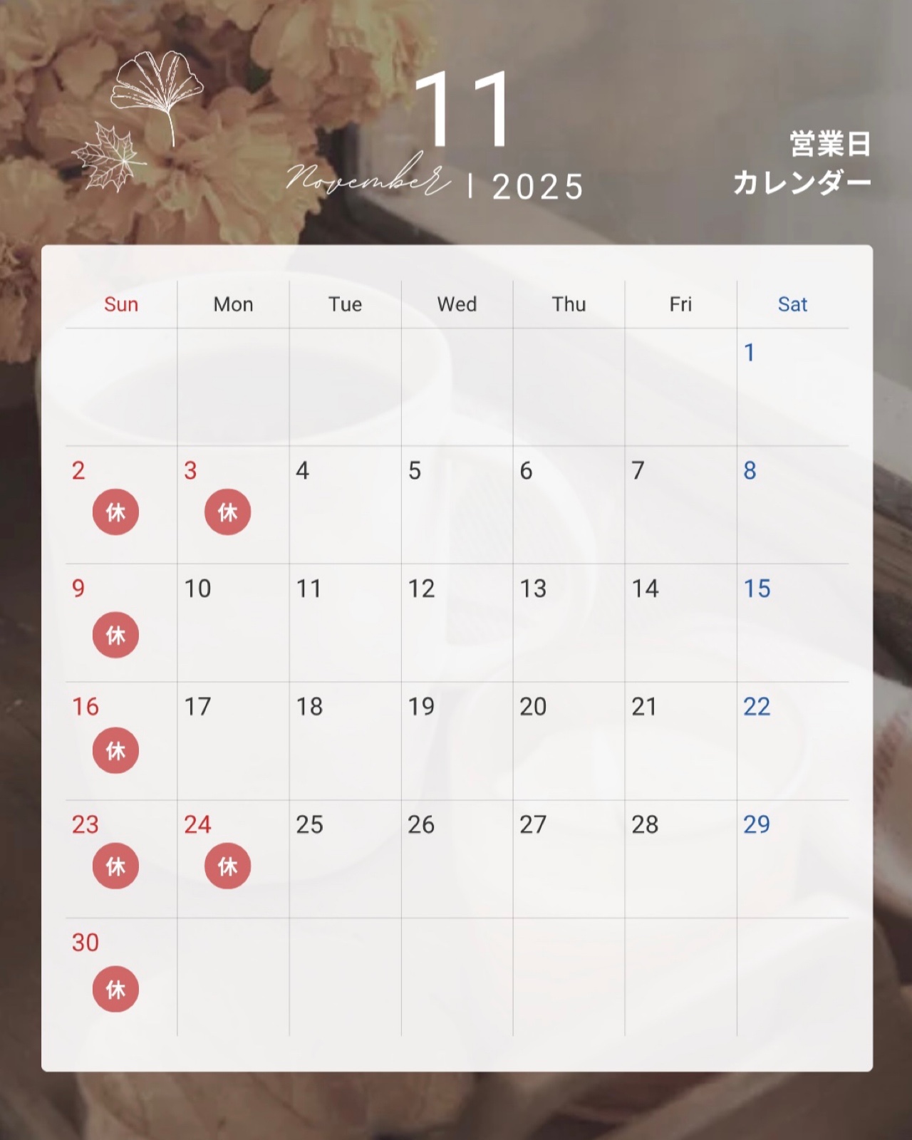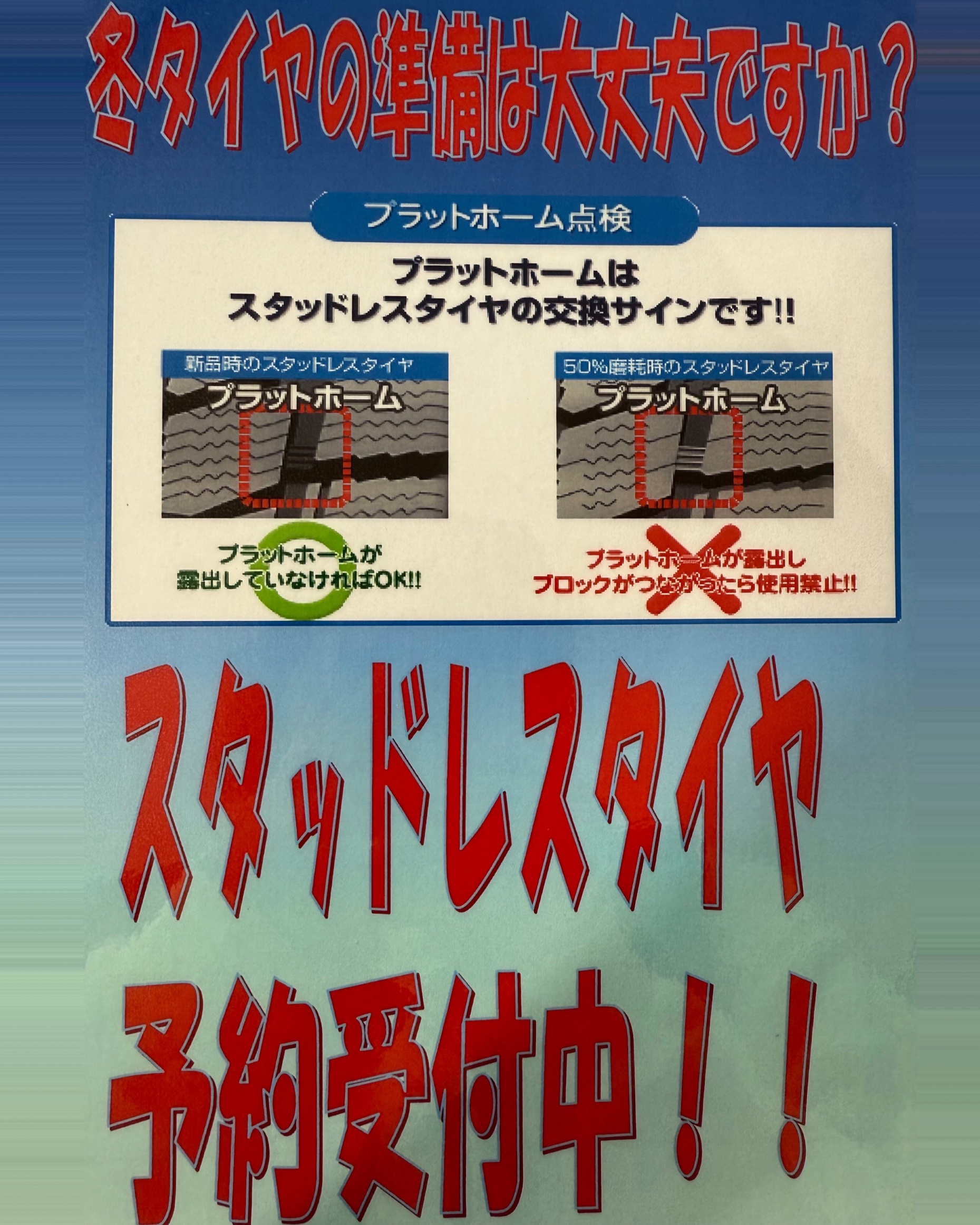 11月の営業日 2025年10月30日 11月は祝日が二回あり3日、24日はお休みとなります! ご迷惑おかけしますが宜しくお願いします⭐︎ 中旬頃からスタッドレスの履き替えが始まり、すぐの作業が難しい日がでてきます! お早目にご予約をお願いします! 0880-22-0530まで!